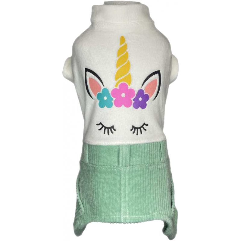Tutina in ciniglia con un tocco di magia e morbidezza con il musetto da unicorno e pantaloncino verde menta in velluto